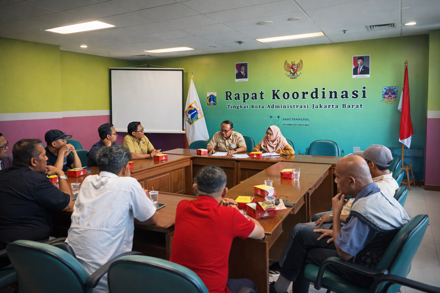 Pertemuan ini dihadiri oleh Kepala Suku Badan Kesbangpol Jakarta Barat, Tumpal Matondang, bersama jajaran, termasuk Nur Zakiyah Mardlatillah selaku Kepala Subkelompok Ketahanan Ekonomi, Sosial Budaya, Agama, dan Kemasyarakatan (Kesbak).