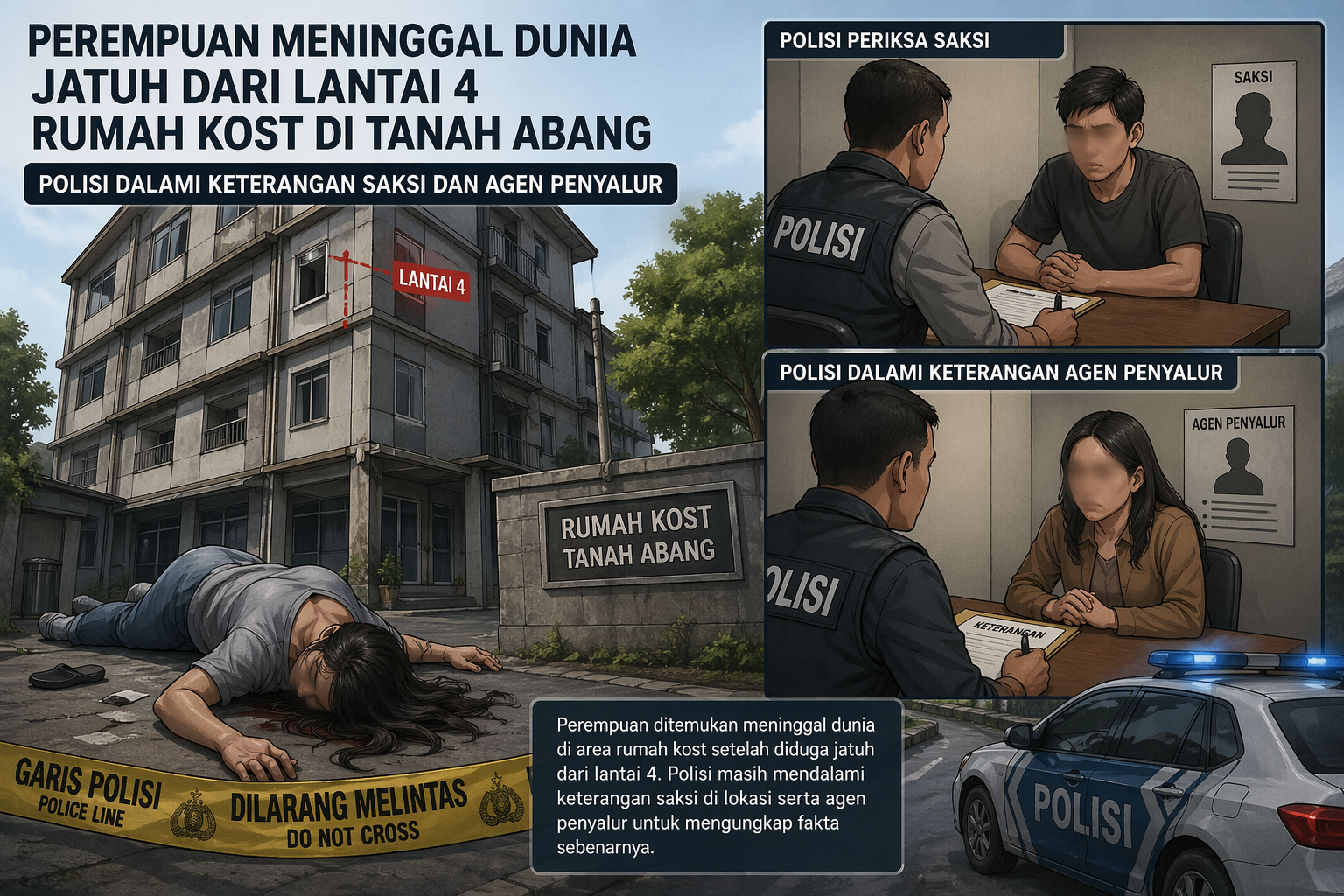 JAKARTA, SUARA HARIAN INDONESIA – Seorang perempuan berinisial D meninggal dunia setelah jatuh dari lantai 4 sebuah rumah kost di kawasan Bendungan Hilir, Tanah Abang, Jakarta Pusat. Polisi masih mendalami peristiwa tersebut, termasuk dengan memanggil agen penyalur pekerja rumah tangga (PRT).