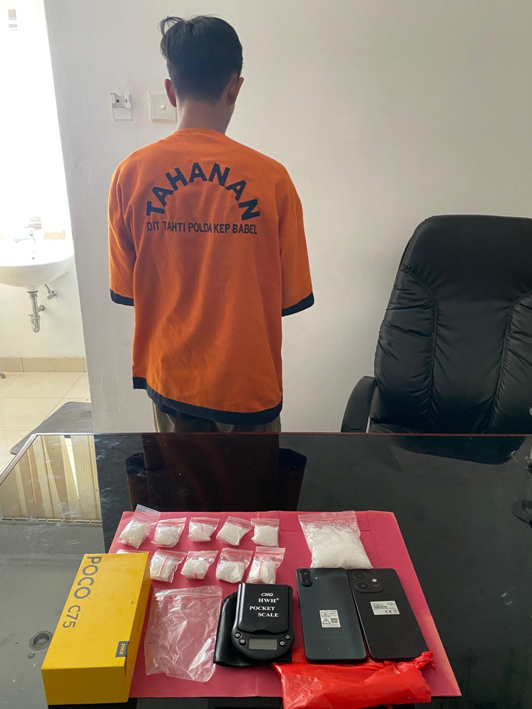 Penangkapan dilakukan di Perumahan Graha Arta Singosari, Kelurahan Jerambah Gantung, Kecamatan Gabek, Kota Pangkalpinang. Dari tangan pelaku, petugas berhasil mengamankan narkotika jenis sabu dengan berat bruto mencapai 210 gram.