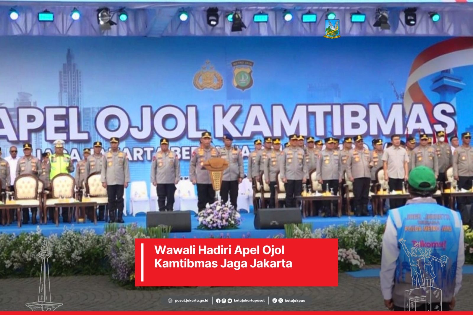 JAKARTA, SUARA HARIAN INDONESIA – Wakil Wali Kota Administrasi Jakarta Pusat Eric Phalevi Zakaria Lumbun menghadiri kegiatan Apel Ojek Online (Ojol) Keamanan dan Ketertiban Masyarakat (Kamtibmas) dengan tema ‘Jaga Jakarta’, di Cawan Barat Monas, Kelurahan Gambir, Kecamatan Gambir, Senin (20/10) pagi.